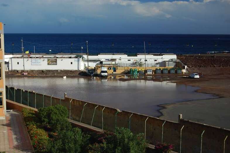 Imagen de una gran laguna de agua formada en una explanada de Melenara (Foto TA) Imagen de una gran laguna de agua formada en una explanada de Melenara (Foto TA)