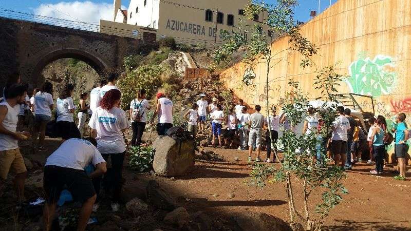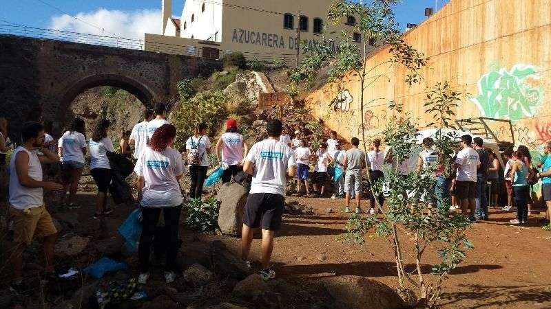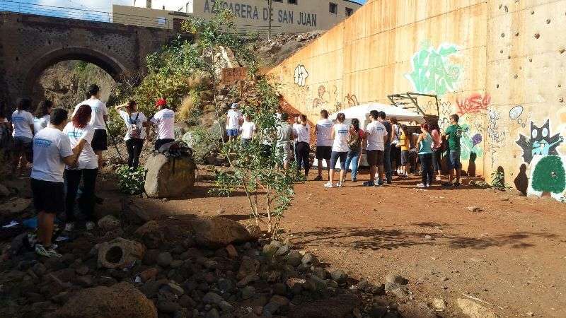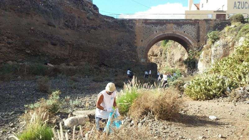 Telde.- Unas 50 personas participan este domingo desde las 10 de la mañana en la limpieza del cauce del Barranco Real de Telde, a la altura del Puente de Tara, una actividad promovida por la firma firma Decathlon, la Asociación de Ciencias Ambientales (ACA) y AD Yukan que cuenta con la colaboración del Ayuntamiento de Telde y en la que ha estado presente el concejal de Medio Ambiente, Álvaro Monzón. TA ofrece reportaje gráfico.