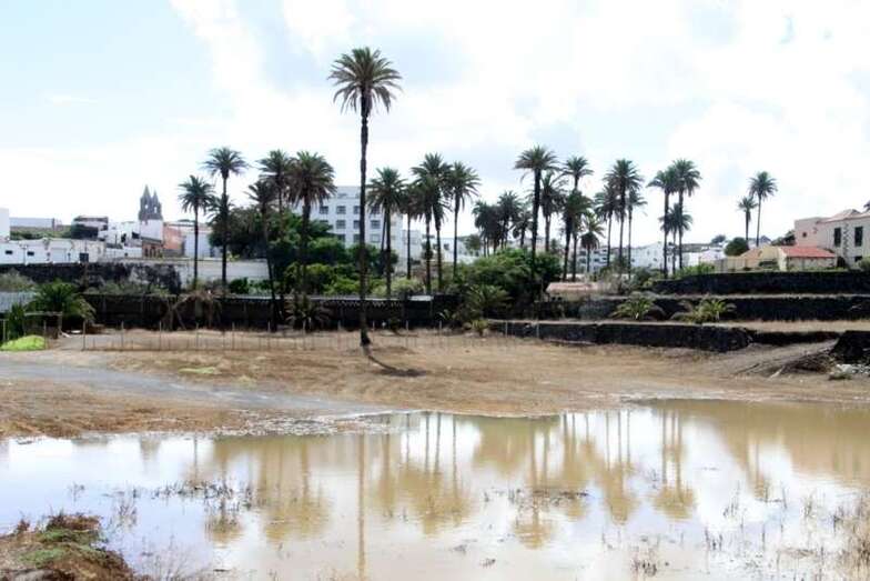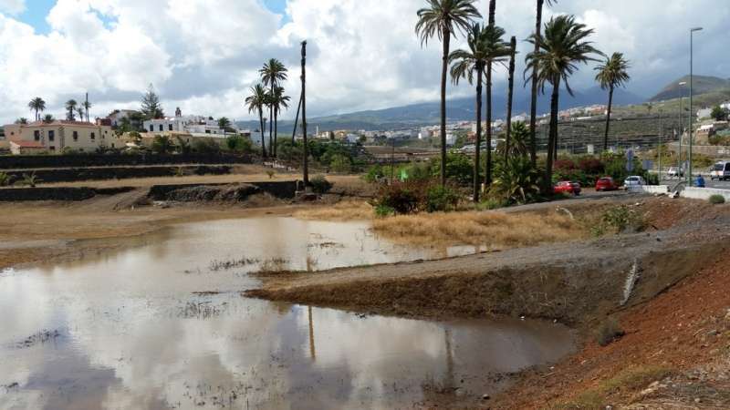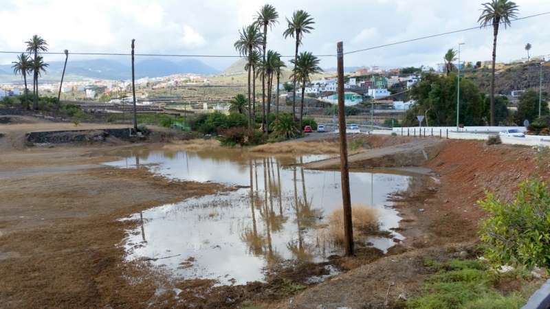 Desde el punto de observación en que me dispongo a publicar algunas imágenes testimonio del desastre ocasionado, tomadas durante la mañana y tarde del sábado 24, numerosos espacios encharcados, estacionamientos, solares, y debido a la rápida y eficaz actuación de los servicios municipales y de protección civil se han solucionado la limpieza en los accesos y vías principales de urgente necesidad para comunicar y liberar espacios donde las torrenteras hicieron estragos.  Con los rayos de sol de la mañana, como si el efecto cromático resolviera el amarillo del pasado estío y este otoño por el que circulamos, desaparecía la sequedad y amarillear de las laderas y medianías, apareciendo el incipiente verdor instantáneo que ya cubre las agradecidas tierras que regadas y empapadas van cambiando de tono. Así es nuestra tierra, nuestra isla y ojalá entre el preciado líquido en las presas de nuestra isla, que con tanta pena y, por otra parte, asombro por el fenómeno climatológico, se ha vertido al mar de nuestro litoral.