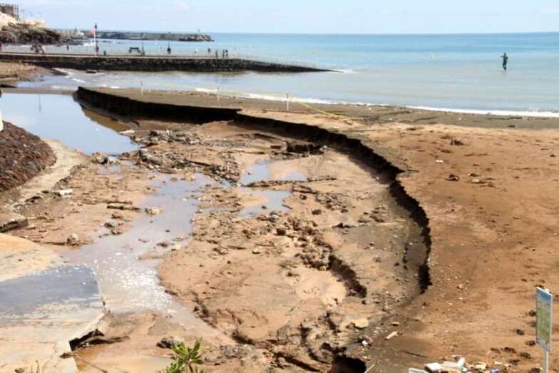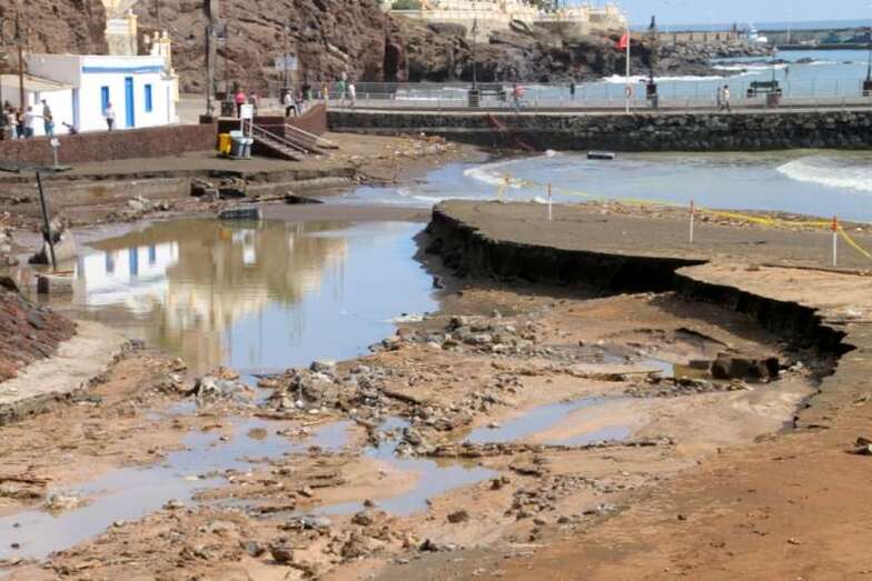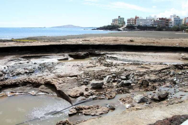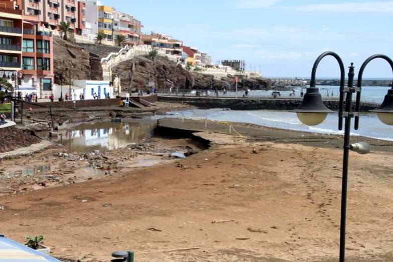 Y llegó el día después de la tromba de agua que descargó hasta los 110 litros/m2, con fuertes rachas de viento, aparato eléctrico, apagones por falta de energía eléctrica, caídas de muros, desprendimientos y aluviones de tierras y piedras, lodo, inundaciones de sótanos, garajes públicos y privados, automóviles arrastrados por la fuerza de las riadas que con una fuerza descomunal llegaban a las bocas de los barrancos. Arrastres de materiales depositados bajo los pretiles de los puentes, o han desbordado los límites de sus cauces hasta llegar a las playas provocando a su paso el desastre, desapareciendo grandes superficies de arenas, dejando al descubierto la epidermis de estas calas, tiñendo las orillas en una gran franja de color ocre, por los depósitos de lodos, barros y todo material que se encontró a su paso. Barrios anegados por el volumen de agua vertida que la red de alcantarillado, rejillas,  desagües y aliviaderos no han podido soportar. En algunos lugares se han tenido que evacuar familias por riesgo de derrumbes de muros y se han visto obligados a desalojar sus viviendas, aconsejados por técnicos que después de valorar los hechos han aconsejado estas medidas.