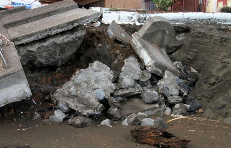 Destrozos en la playa de La Garita (Foto Jesús Ruiz Mesa) Destrozos en la playa de La Garita (Foto Jesús Ruiz Mesa)
