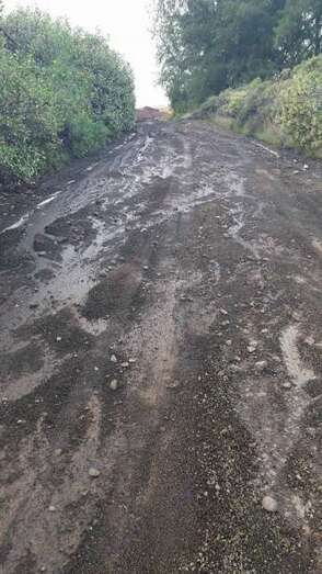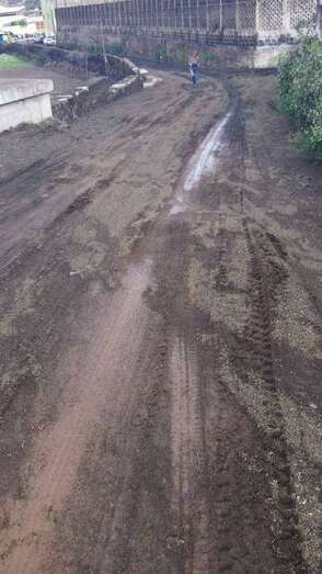 Los vecinos reclaman una actuación urgente del área de Vías y Obras que dirige el socialista Alejandro Ramos ante el estado en que ha quedado esta carretera, atiborrada de picón por la escorrentía.