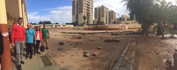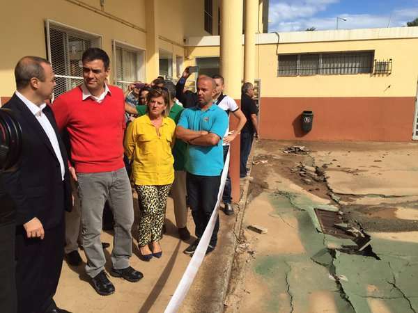 Sánchez llegó a La Garita procedente del Valle de Jinámar, donde a las 14.30 horas visitó un bloque de viviendas en el que han sido desalojado los bajos por riesgo de corrimiento de tierras y donde se está instalando una valla de contención debido a los desprendimientos de grandes piedras. A continuación, el líder socialista visitaría el Colegio de Educación Infantil y Primaria Europa, también en la demarcación de la capital grancanaria, donde fue recibido por el alcalde Augusto Hidalgo y el director del centro, quien le explicó el estado del edificio, ahora cerrado, y la situación que viven sus alumnos, profesores y personal. La riada penetró en el recinto educativo y lo anegó con un metro de agua de altura