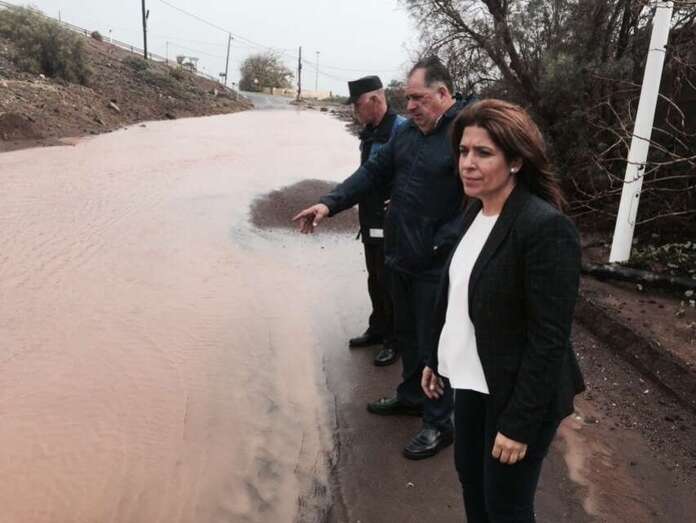Telde.- Llueve sobre mojado en Telde. Las persistentes precipitaciones que desde primera hora de este sábado han regado buena parte de Gran Canaria ya han dejado en el municipio más de 19,7 litros por metro cuadrado. Los servicios de emergencias municipales se mantienen en alerta, con varias unidades de la Policía Local desplegadas y voluntarios de Protección Civil en servicios preventivos. La alcaldesa Carmen Hernández y el concejal de Seguridad, Juan Martel, coordinan el dispositivo y supervisan in situ las incidencias.