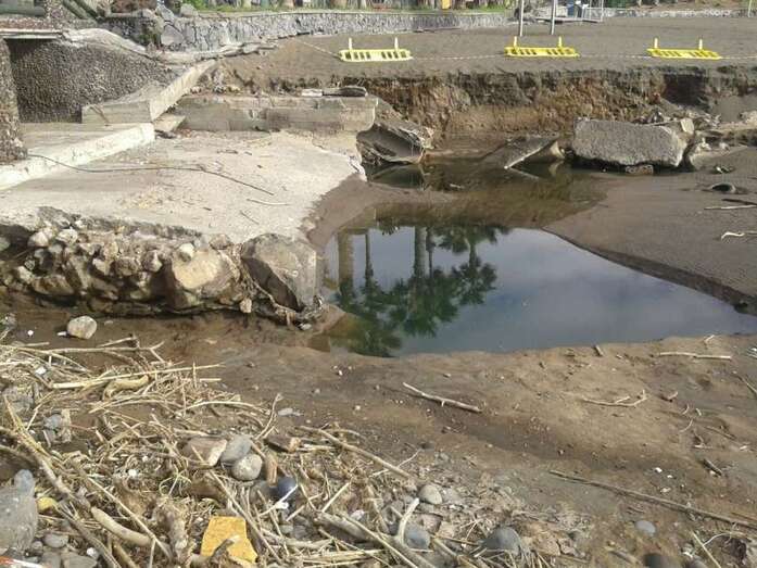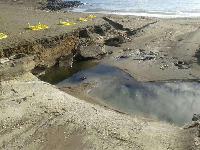 Telde.- Las playas de Telde poco a poco están recobrando la normalidad, tras el temporal de lluvia de días pasados, aunque continúan cerradas al baño debido a que la calidad de sus aguas aún no es óptima desde el punto de vista sanitario. En La Garita, los trabajos acometidos en los últimos días han pemitir eliminar la peligrosa zanja abierta por la escorrentía al pie del edificio El Timón, mientras que en Hoya del Pozo son todavía visibles los efectos de la lluvia.