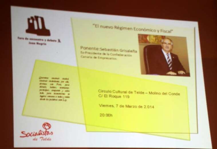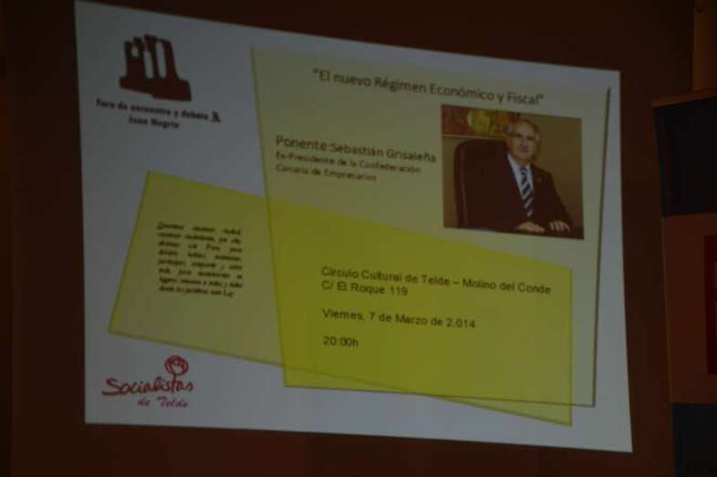 Ante unas 30 personas, Grisaleña, que fue presentado por Hugo Roig, miembro de la ejecutiva del PSOE de Telde, detalló la posición de las pequeñas y medianas empresas de Canarias ante la futura renovación y actualización del Régimen Ecónomico y Fiscal de Canarias (REF), que entrará en vigor el 1 de enero de 2015.