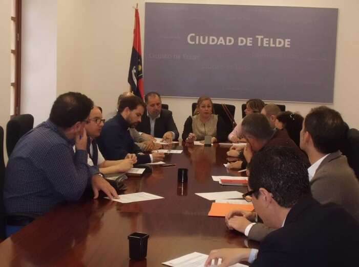Este miércoles, los responsables de los parques empresariales de Telde -Ezequiel Barrera por Salinetas, Francisco Pérez por El Goro, Javier Sanpedro y Antonio Martín por Melenara, Juan Sarmiento García por Ajimar y José Miguel Rodríguez por Femepa, que agrupa a las zonas de Cruz de La Gallina, Maipez y Lomo la Francia- se reunían con una representación municipal encabezada por la alcaldesa Mari Carmen Castellano y en la que estuvieron presentes los concejales Pablo Rodríguez, Juan Martel y Sonsoles Martín, además de técnicos de Desarrollo Local y de Obras Públicas.