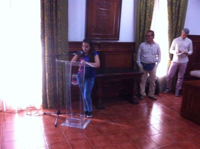 Por otro lado, el salón de las Casas Consistoriales también acogió a la alumna de 2º de la ESO del IES Jinámar, Davinia Cabrera, que fue la encargada de la lectura del manifiesto por la erradicación de la esclavitud infantil.