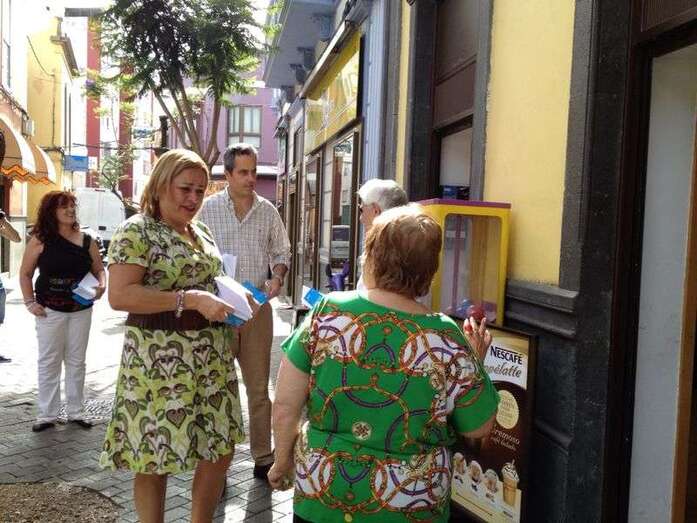 Esta misma tarde también tenía lugar por las calles de San Gregorio un reparto de folletos informativos del Partido Popular. La presidenta local, Mari Carmen Castellano, acompañada por el diputado regional Miguel Jorge Blanco y por otros militantes de su partido recorrió el casco de Telde para conversar con los ciudadanos y exponerles el programa electoral europeo del PP.