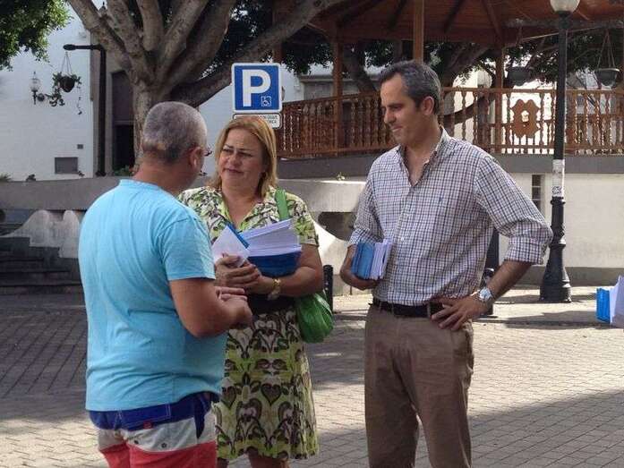 Telde.- Los candidatos de Coalición Canaria al Parlamento Europeo, Javier Morales y Carmelo Afonso, visitaron esta tarde el Valle de Jinámar para mantener un encuentro con sus vecinos y explicarles los detalles del programa electoral nacionalistas de cara a los comicios del próximo 25 de mayo. Casi al mismo tiempo, Mari Carmen Castellano repartía folletos informativos del PP por las calles de San Gregorio acompañada por varios militantes y por el diputado regional Miguel Jorge Blanco.