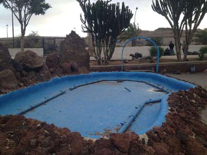 En cuanto al parque público, su estado es lamentable y se comprueba a simple vista sostienen los nacionalistas. La pavimentación de los pasillos se encuentra levantada por las raíces de los arboles, está totalmente seco, con peligro de que se caigan ramas de los cardones de dos metros de altura; hay un banco putrefacto por las palomas, la fuente no funciona y la sala de máquinas situada en el suelo tiene la tapa rota lo que representa un gran peligro.
