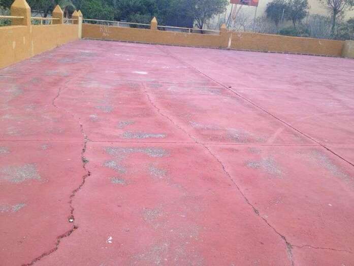 Lo mismo sucede con el parque infantil, donde el firme de caucho está ya totalmente levantado, el tobogán y los columpios retirados y muchos accesorios rotos y en mal estado. O la cancha deportiva situada entre el bloque 4 y el 5, falta de limpieza, pintura y equipamiento.