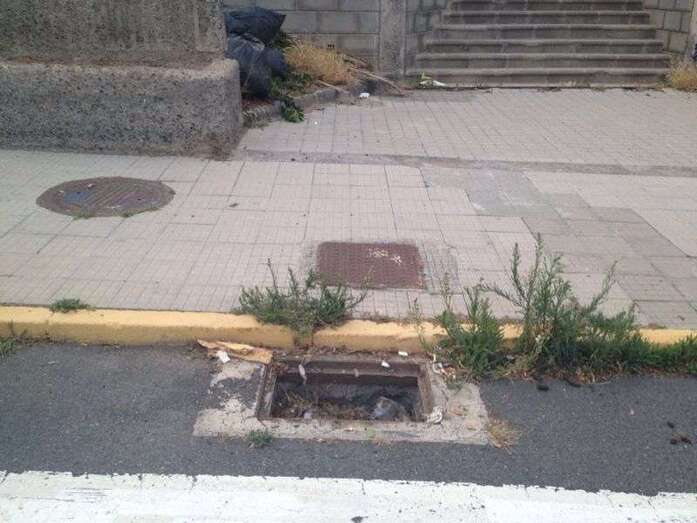También los drenajes de pluviales están en algunos casos totalmente obstruidos por la suciedad o carecen de tapa con el peligro que eso supone.