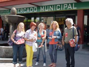 Telde.- Miembros de la asamblea de Izquierda Unida Canaria (IUC) de Telde, junto a la candidata al Parlamento Europeo Isabel Saavedra, recorrieron esta mañana el Mercado Municipal y el mercadillo de San Gregorio concienciando a la ciudadanía sobre la importancia de acudir a las urnas el próximo 25 de mayo “para parar los recortes”.