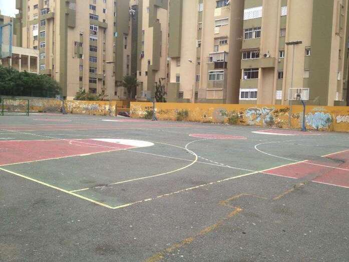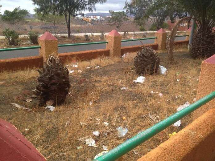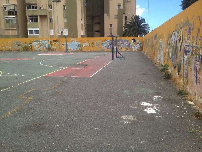 Respecto a la cancha deportiva situada junto al colegio Agustín Millares Sanz, la falta de limpieza, pintura o equipamiento también es clamorosa, y en las imágenes se observa claramente el terrible estado en el que se encuentra.