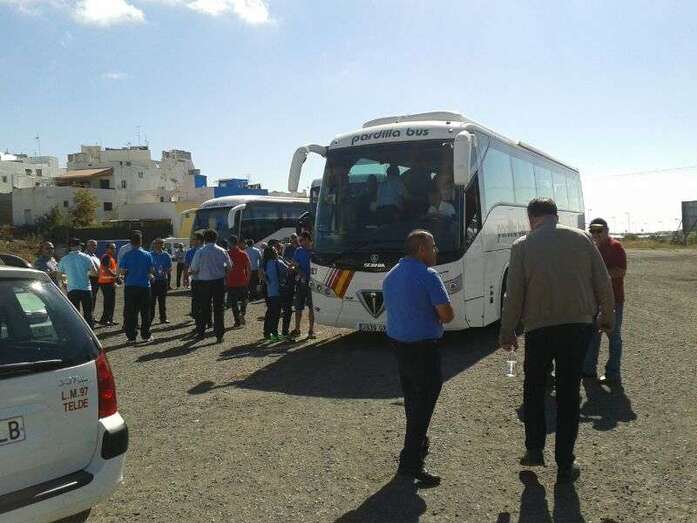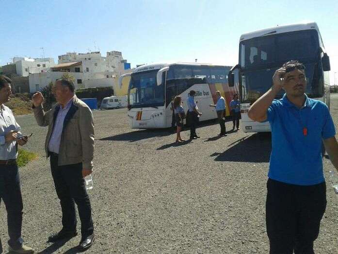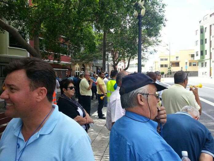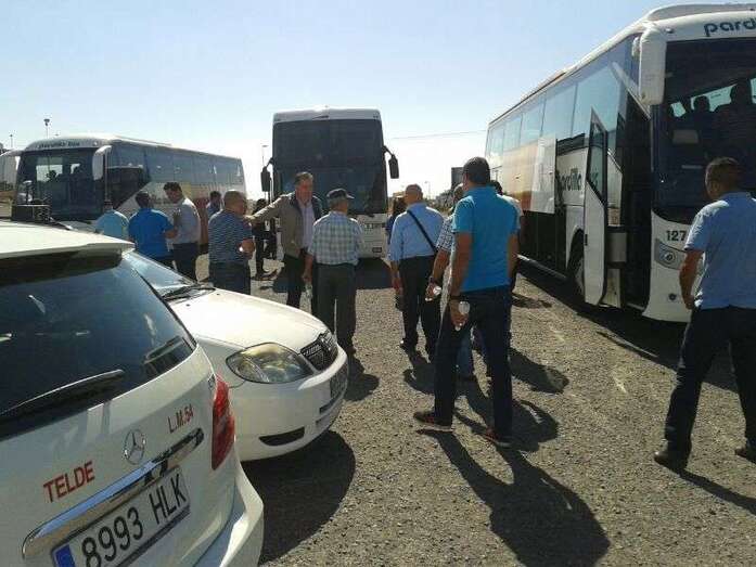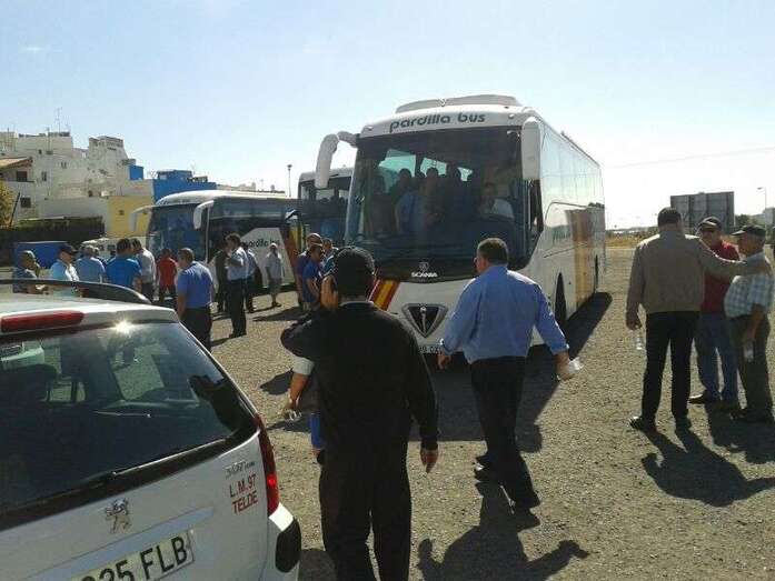 Los profesionales de Telde se reunieron desde las diez de la mañana en la explanada de La Barranquera, donde dejaron sus vehículos para partir en dirección a Las Palmas de Gran Canaria en varias guaguas que han fletado junto a familiares y allegados que secundan la concentración.