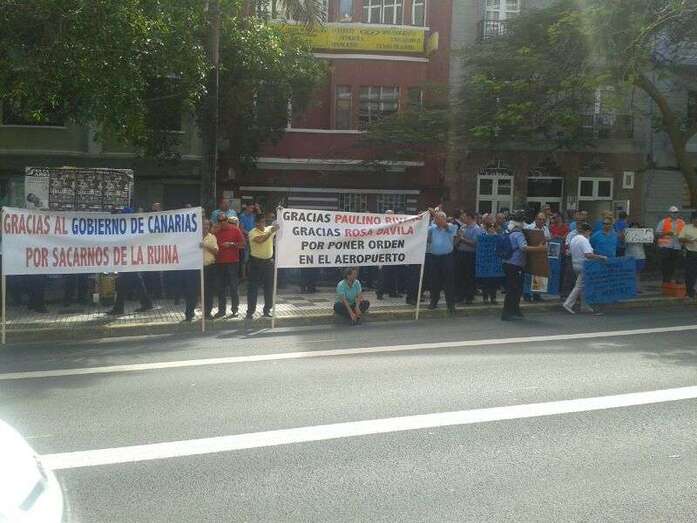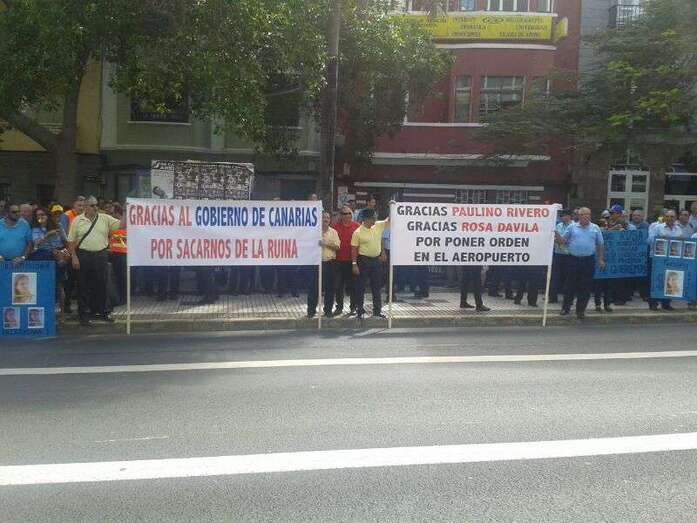 Los profesionales portan pancartas en las que agradecen al Gobierno canario por "poner orden en el Aeropuerto"