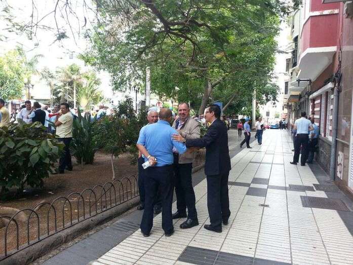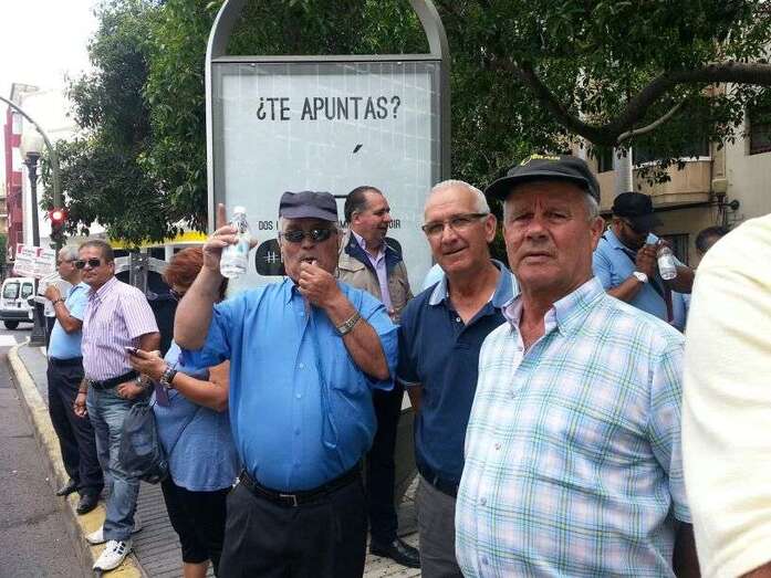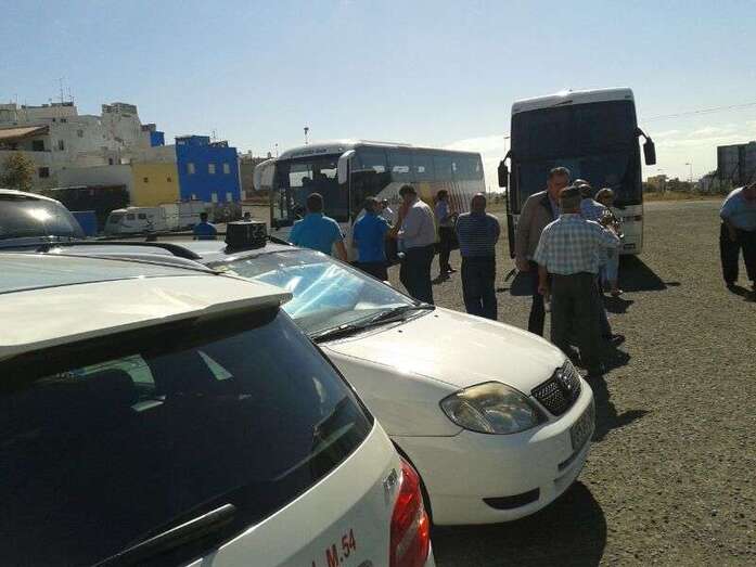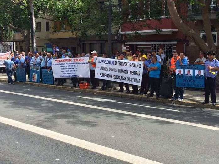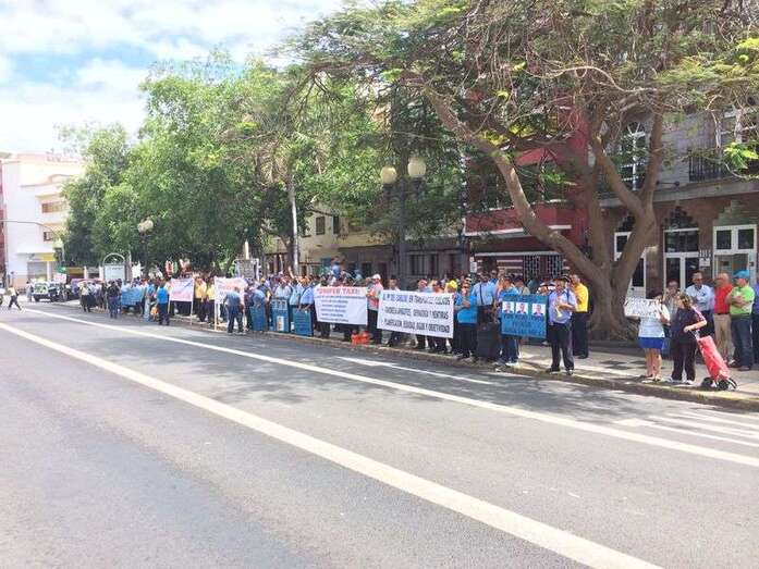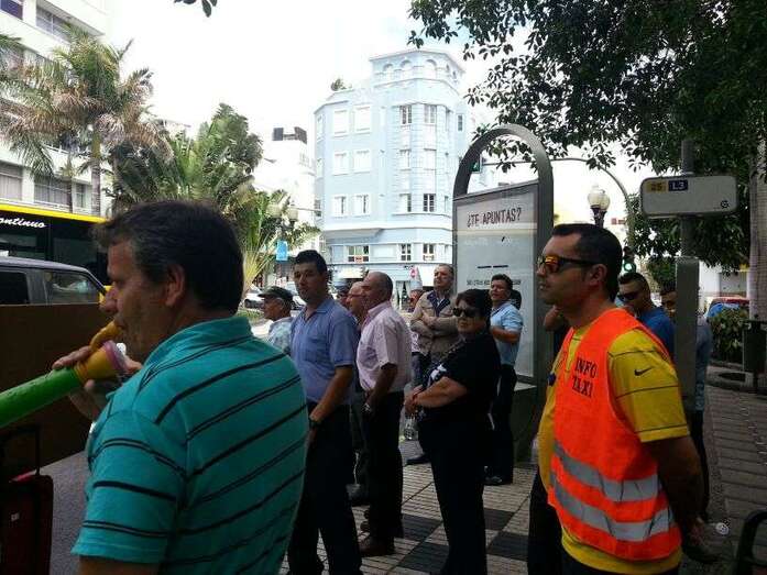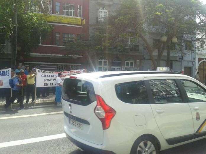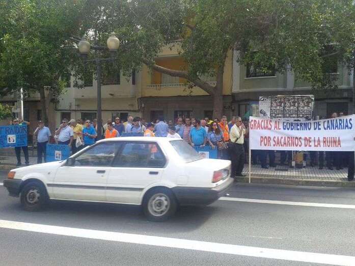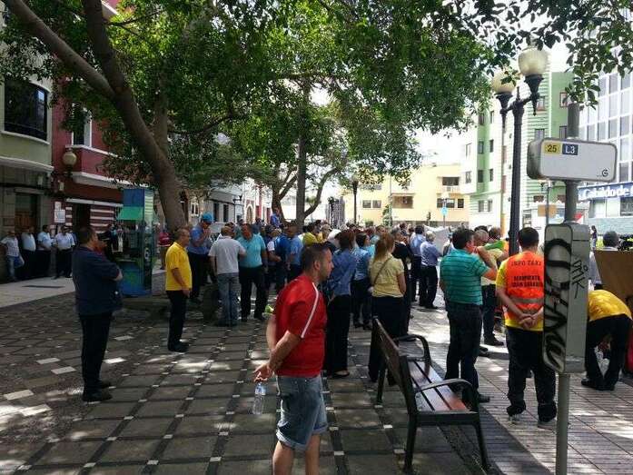 Taxistas y representes municipales de Telde e Ingenio, protestando frente a la sede de Transportes (Foto TA) Taxistas y representes municipales de Telde e Ingenio, protestando frente a la sede de Transportes (Foto TA)