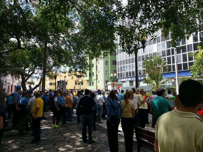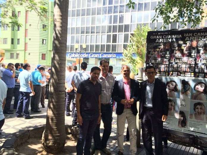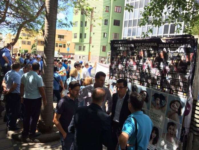 En la capital se han unido los profesionales de Ingenio y juntos están protagonizando una protesta en la calle Tomás Morales, a las puertas del área de Transportes que dirige la consejera María del Carmen Rosario Godoy.