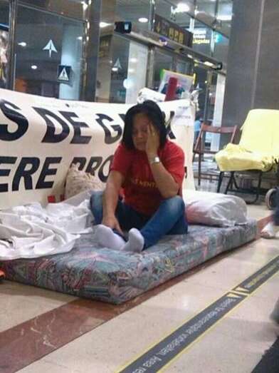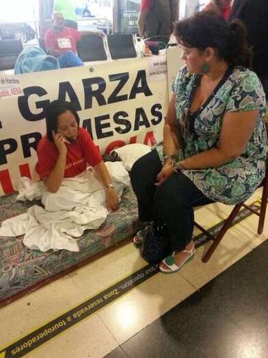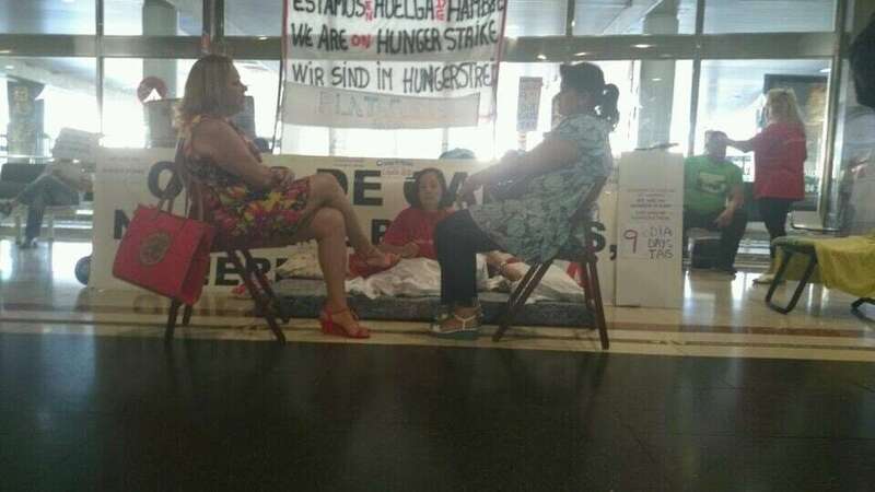 Uno de los documentos de recogida de firmas se encuentra a disposición del público en la terminal de llegadas del Aeropuerto de Gando, lugar en el que Margarita Alonso está llevando a cabo desde el pasado día 7 de los corrientes una huelga de hambre acompañada en todo momento por vecinos de Ojos de Garza…