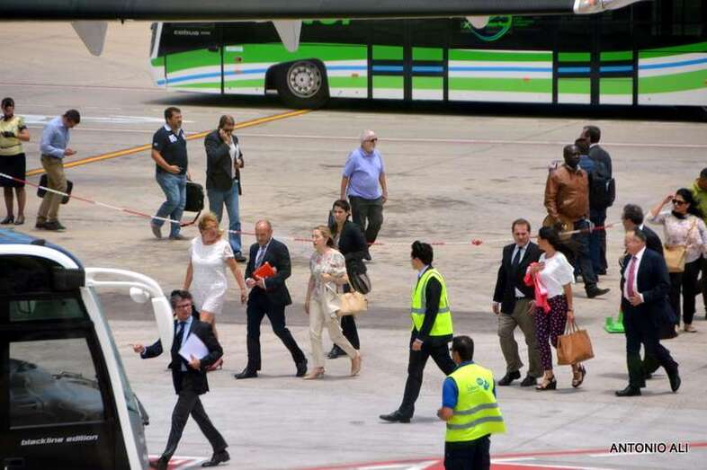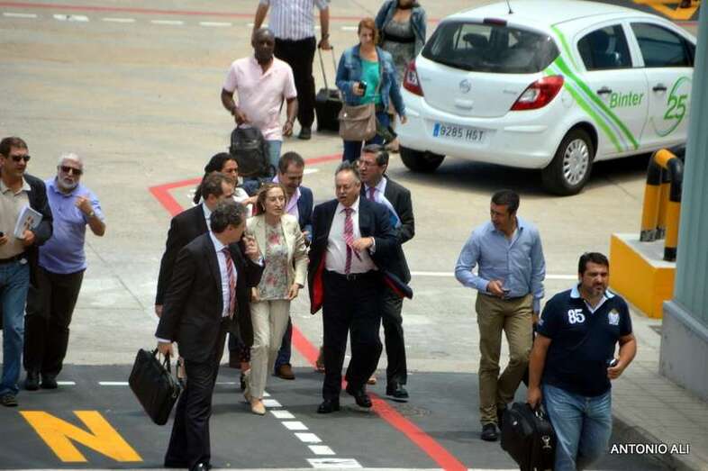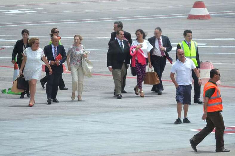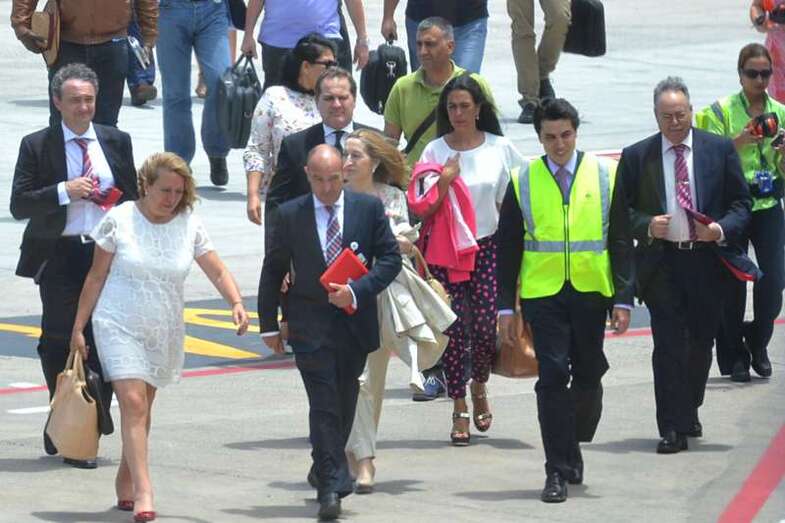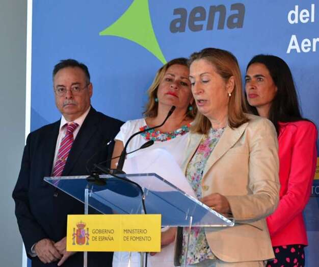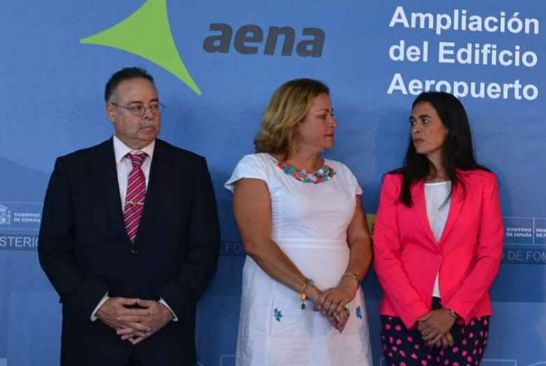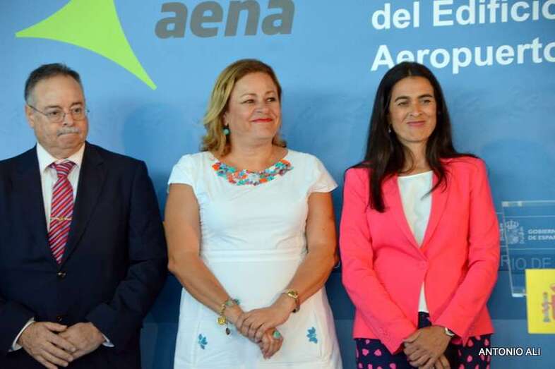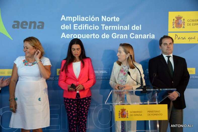 Pastor estuvo acompañada en el acto, que comenzó más tarde de lo previsto debido al retraso del vuelo en el que arribaron, por el presidente de Aena, José Manuel Vargas; por la alcaldesa de Telde, Mari Carmen Castellano; por el consejero de Política Territorial del Gobierno de Canarias, Domingo Berriel; por la delegada del Gobierno en Canarias, María del Carmen Hernández Bento, y por el presidente de Binter, Pedro Agustín del Castillo.