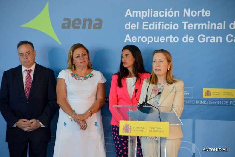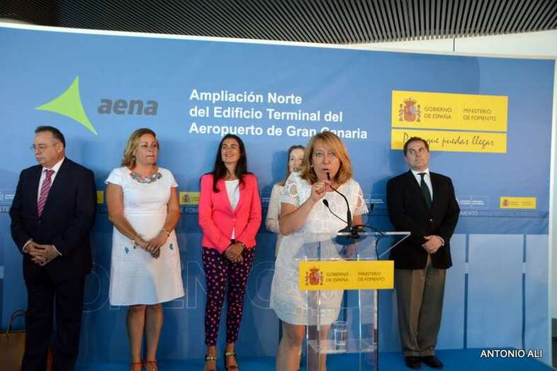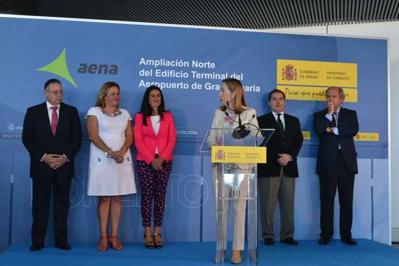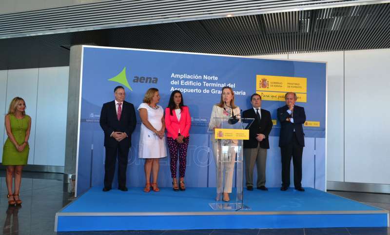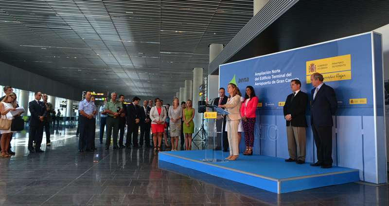Telde.- La ministra de Fomento, Ana Pastor, inauguró oficialmente este miércoles la prolongación norte de la terminal del Aeropuerto de Gran Canaria, que fue abierta al público el pasado 15 de julio. Lo hizo destacando que serán unas instalaciones pensadas para todos, funcionales, sostenibles, sin barreras arquitectónicas y respetando el medio ambiente.Valoró también la importancia que tiene este aeródromo en la red de Aena en cuanto al tráfico de pasajeros.