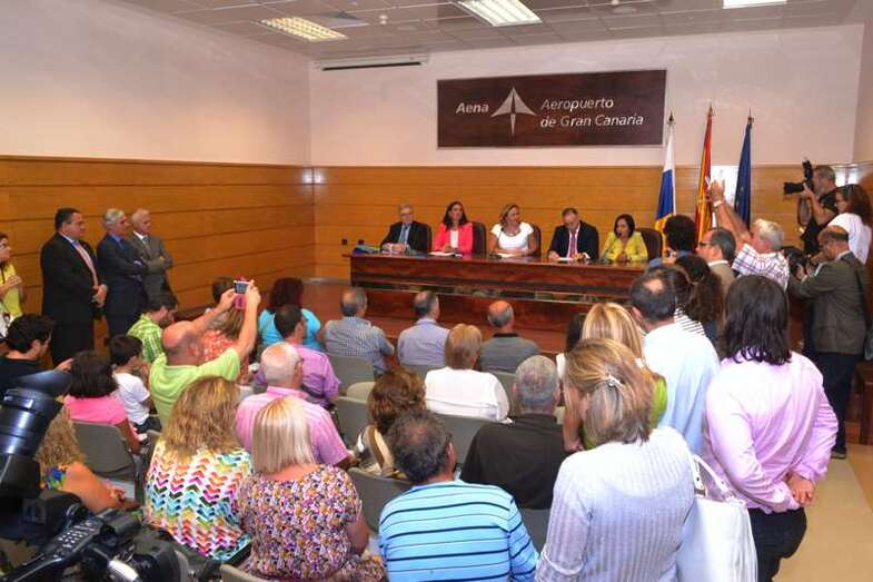 Minutos antes de las cinco de la tarde la buena noticia se extendía como la pólvora entre los vecinos, políticos y demás personas que aguardaban impacientes a las puertas de las oficinas del Aeropuerto de Gran Canaria.