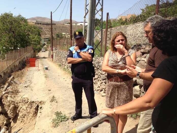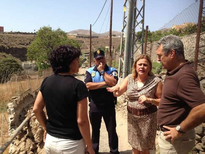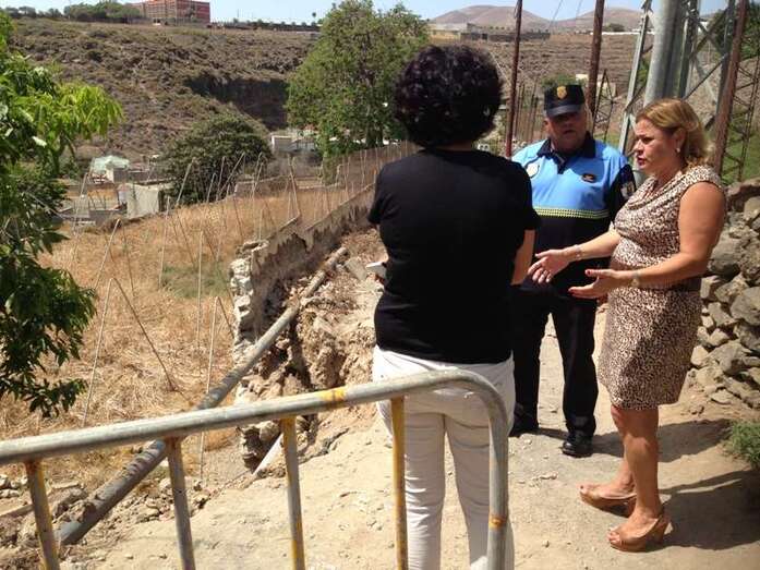 Telde.- La alcaldesa de Telde, Mari Carmen Castellano, acompañada del jefe de la Policía Local, Antonio Mederos, y de técnicos del Ayuntamiento, visitó en la mañana de este jueves la zona del barranco de La Rocha donde tuvo lugar un derrumbe parcial en un camino rural. Durante el recorrido analizaron las posibles soluciones a este grave problema.