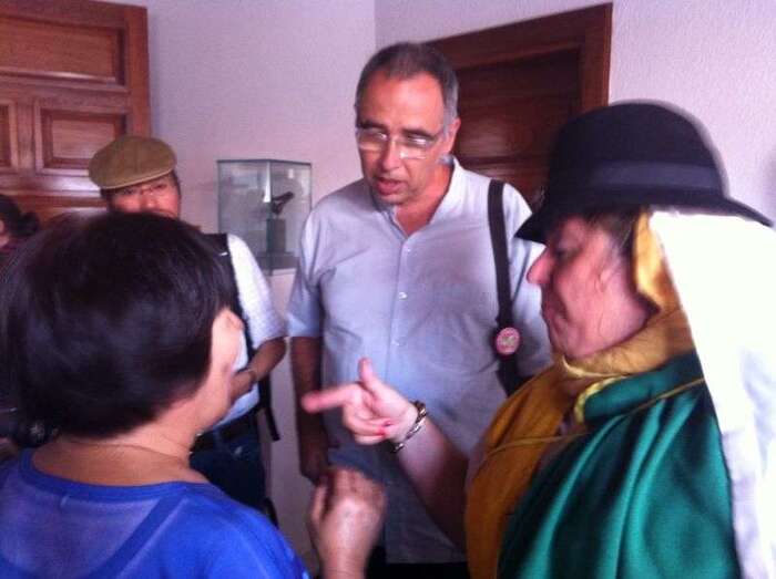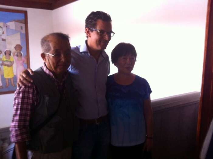 En la recepción también estuvo presente el escultor Francisco Pérez Bethancor, que ha sido el encargado de llevar a cabo los recientes trabajos de reforma de la Plaza de Hiroshima y Nagasaki, situada en la calle José Arencibia Gil, así como un grupo de 10 estudiantes del IES Casas Nuevas quienes en el curso anterior han estudiado la materia y han decidido hacer un alto en sus vacaciones para poder compartir una jornada con el grupo nipón.