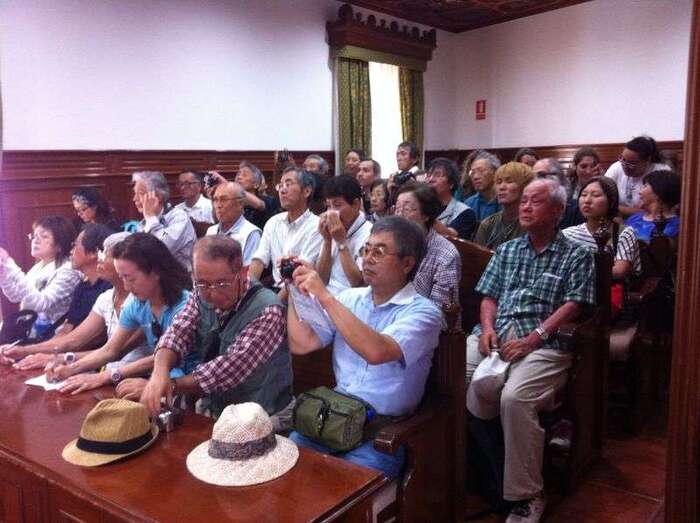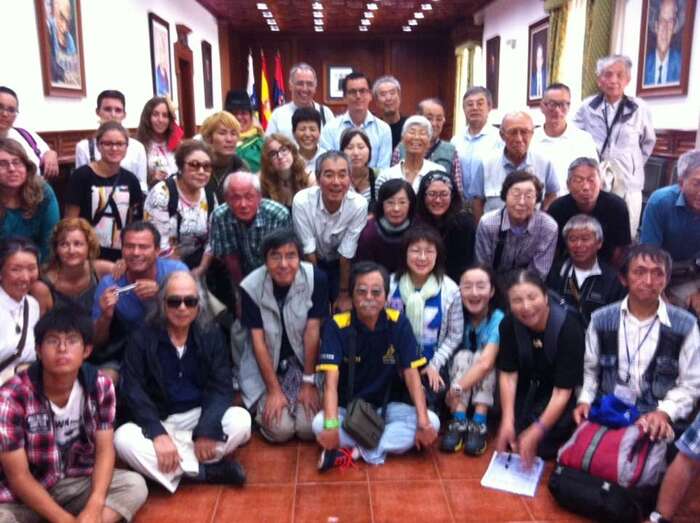 Telde es el único lugar en Europa que tiene un rincón para rendir homenaje a los trágicos bombardeos nucleares que sufrió Japón en el 45. Por lo que un año más, los pasajeros del Barco han atracado en Gran Canaria y se han desplazado hasta Telde donde han sido recibidos por ambos mandatarios en el Salón de Plenos de las Casas Consistoriales.