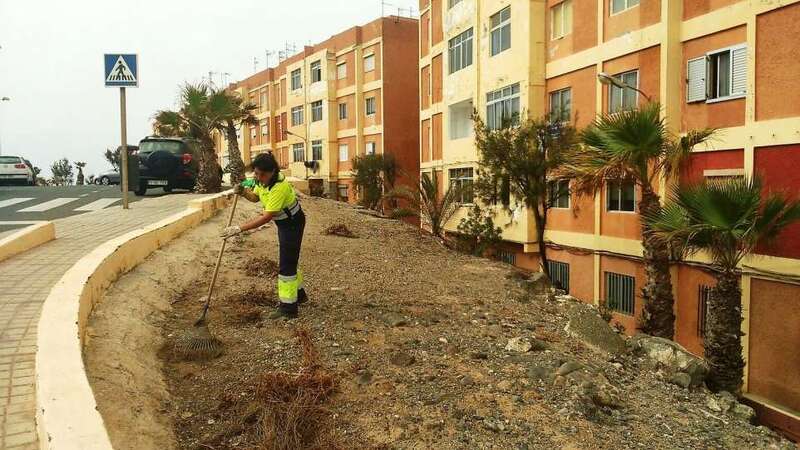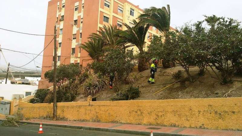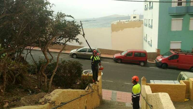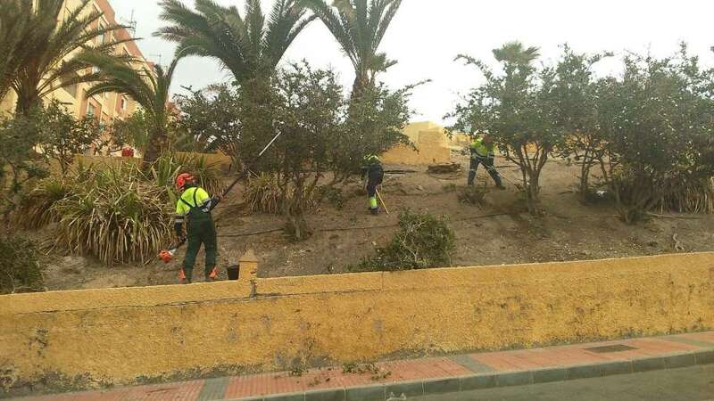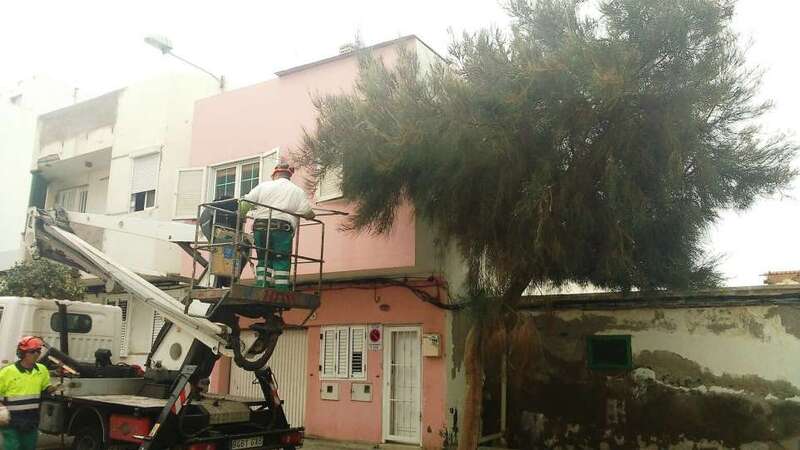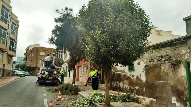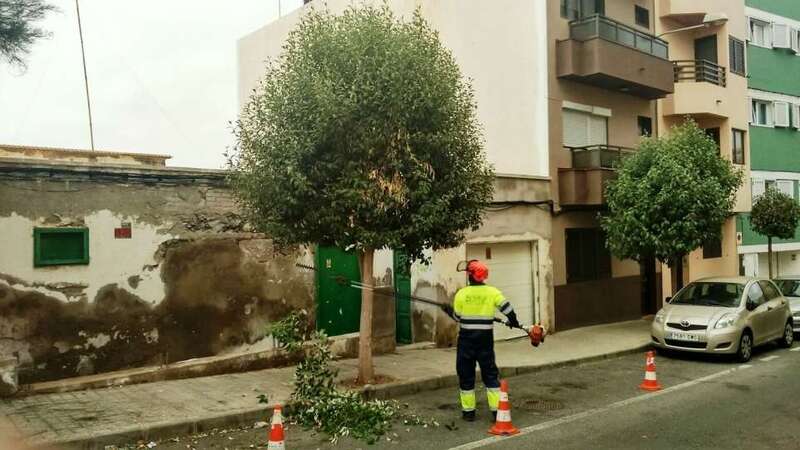 Intervención del personal de Parques y Jardines en una calle de Clavellinas (Foto TA)