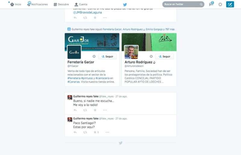 El ‘falso’ Guillermo Reyes dio el salto a Twitter el pasado miércoles con un “Paco Santiago!? Estás por aquí?”, y desde entonces ha recabado la atención de un centenar de seguidores lanzando controvertidos y jocosos mensajes.