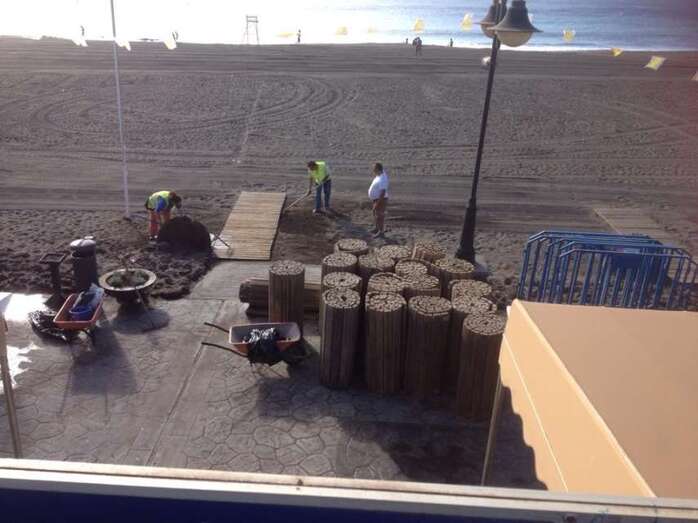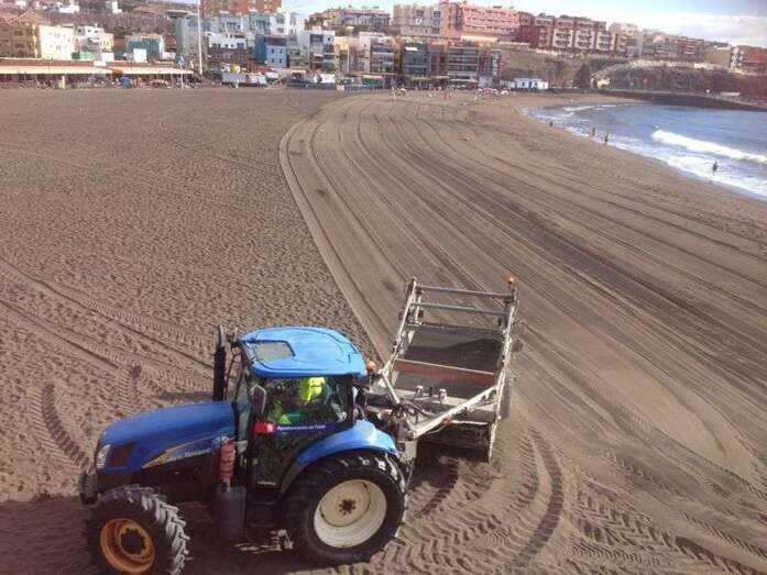 En las labores de limpieza se contó con el concurso de una cribadora de la Concejalía de Playas, un tractor, tres camiones de recogida de residuos y una barredora. Sólo de los riscos próximos a la playa de Melenara se sacaron más de 60 basuras de residuos.