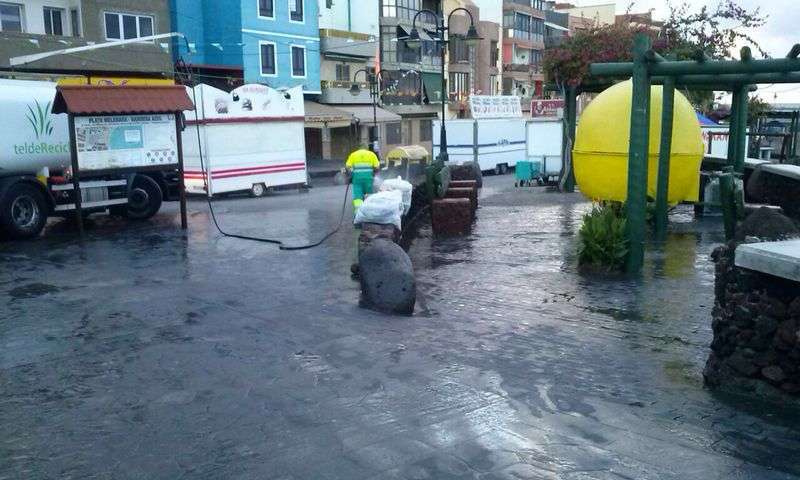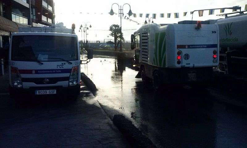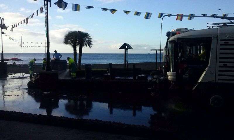 Un amplio dispositivo de personas, compuesto por 22 operarios de la concesionaria FCC del servicio y del servicio de Playas, limpió desde las 5 de la mañana de este domingo la playa Melenara, con especial intervención en la arena, muelle, avenida y calles aledañas y escalinatas de Taliarte, precisó Suárez.