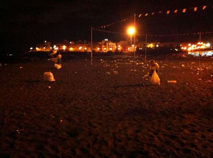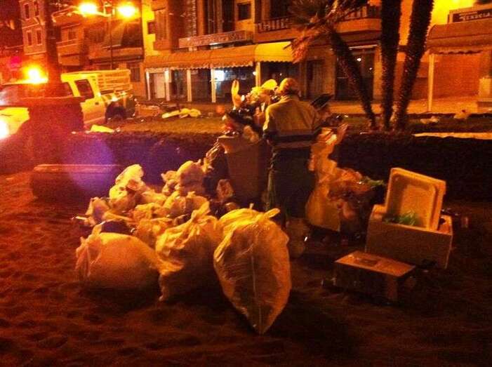Telde.- Más de 10 toneladas de basura. Esa es la cantidad que dejaron las más de 10.000 personas que asistieron la noche de este sábado a la playa de Melenara a presenciar el concierto Tributo a Abba y el espectáculo pirotécnico acuático-terrestre, según avanzó esta madrugada a TELDEACTUALIDAD el concejal delegado de Recogida de Residuos Sólidos y Limpieza Viaria, Héctor Suárez. TA avanza imágenes de la limpieza.