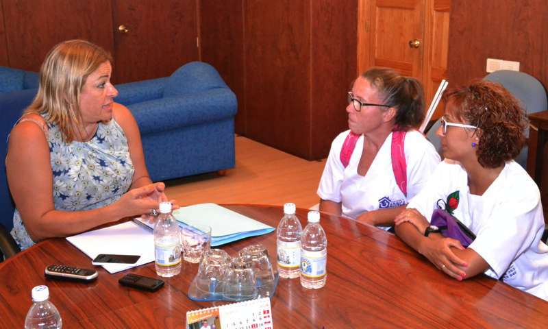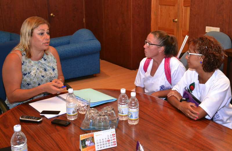 Reunión de urgencia este mediodía en las dependencias de Alcaldía para abordar la huelga del personal que presta el servicio de ayuda a domicilio. Mari Carmen Castellano, junto al concejal de Contratación, Fidel Ruiz, a la directora de Servicios Sociales, Silvia Rodríguez Molina y al coordinador de Economía y Hacienda, Darío López; se reunía con dos de las trabajadoras de Oligal 1968 para exponerles la situación.