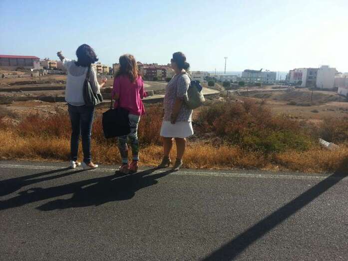 Carmen Hernández (c) y Celeste López durante la visita a Montaña de Las Huesas (Foto TA) Carmen Hernández (c) y Celeste López durante la visita a Montaña de Las Huesas (Foto TA)