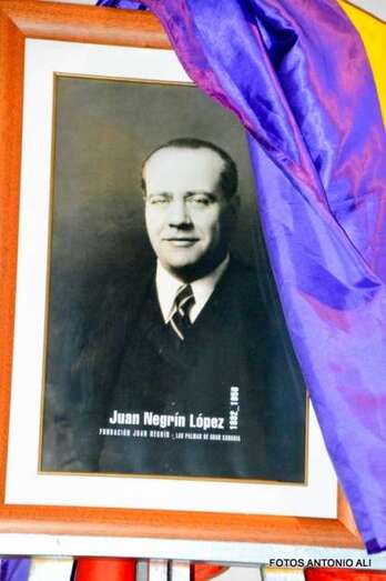 Telde.- El Foro de Encuentro y Debate Juan Negrín ensalzó este viernes la figura del político y científico canario. Estaba previsto que fuera el propio presidente de la Fundación Juan Negrín, José Medina Jiménez, el que se dirigiera al público, pero finalmente por motivos personales tuvo que ser Sergio Millares Cantero, asesor histórico de colectivo, quien expuso la labor que está realizando la entidad e hizo entrega de un cuadro a la agrupación local del PSOE del que fuera presidente de la Segunda República.