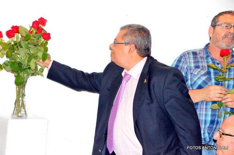 El acto tuvo lugar en la sede del Círculo Cultural de Telde, donde acudieron representantes de la Agrupación Juan Negrín de Telde, con su secretario general a la cabeza, Alejandro Ramos.