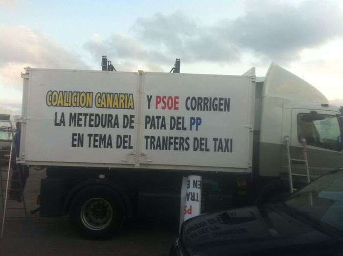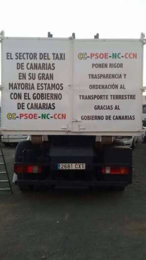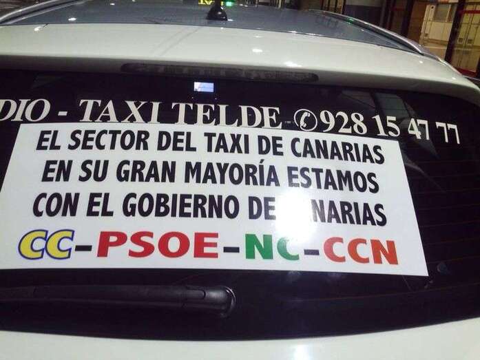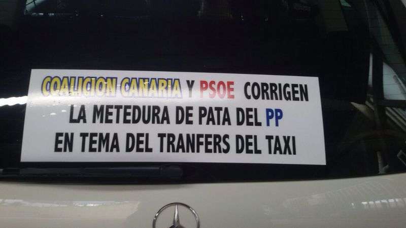 Críticas que los taxistas de ambos municipios han visibilizado, además de en numerosas protestas, mediante carteles adheridos a sus vehículos. En ellos se pueden leer mensajes en los que acusan a los populares grancanarios de “meter la pata” o de “hundirles en la miseria”.