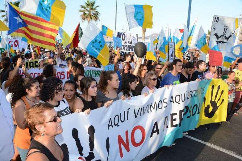 En Santa Cruz de Tenerife y Las Palmas de Gran Canaria se registraron las manifestaciones más numerosas, con varios miles de asistentes en contra de los sondeos autorizados a Repsol a unos sesenta kilómetros al este de Lanzarote y Fuerteventura. A estas prospecciones se opone el Gobierno canario, que ha convocado una consulta ciudadana para el 23 de noviembre que el Gobierno central se propone recurrir ante el Tribunal Constitucional, así como el Parlamento de Canarias y los cabildos de Lanzarote y Fuerteventura.