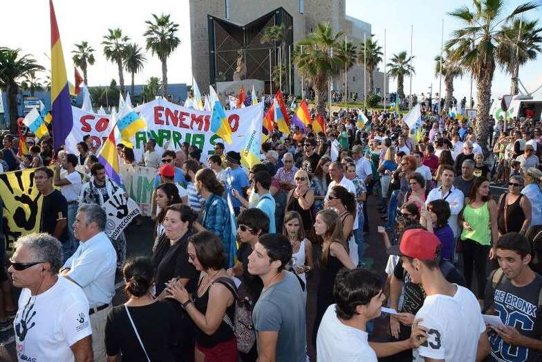 Cerca de 8.000 personas han recorrido este sábado las calles de Las Palmas de Gran Canaria para mostrar su rechazo a las prospecciones petrolíferas autorizadas por el Gobierno central. Miles de ciudadanos han partido desde el Auditorio Alfredo Kraus y han llegado al parque Santa Catalina coreando consignas como "Soria escucha Canarias está en la lucha" o "Coalición Canaria la consulta es una patraña".