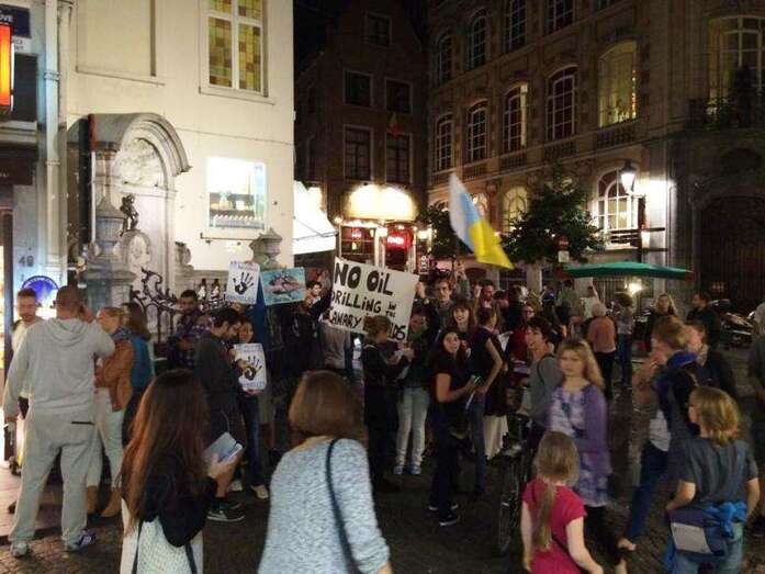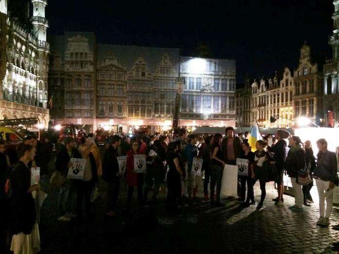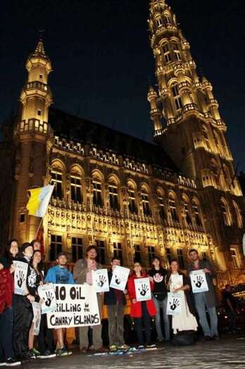 Portesta de universitarios canarios en Bruselas, este sábado 18 de octubre (Foto TA)