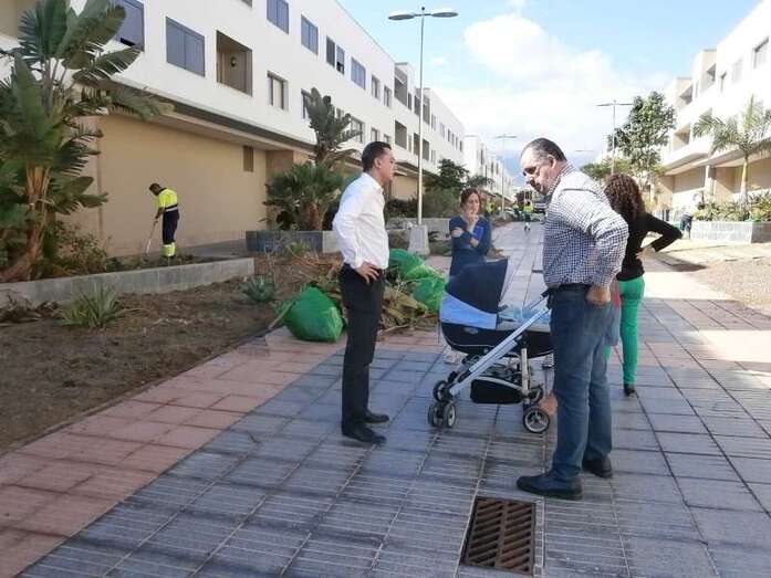 Mario Torres, acompañado por Martel, supervisó in situ durante un largo rato la actuación del personal de su departamento y compartió con vecinos sus inquietudes. El próximo 15 de diciembre volverá a reunirse con ellos para ir perfilando otras intervenciones que permitan atender las necesidades de este complejo residencial y fijar un plan de mantenimiento del trabajo que comenzó este martes y finalizará el próximo jueves.
