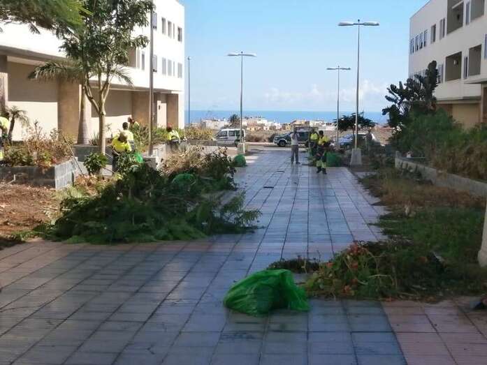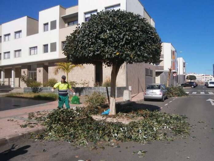 Telde.- Las familias que habitan en la urbanización residencial La Vega, al naciente de la vía de circunvalación y del sector de Picachos, no daban crédito a lo que veían sus ojos. En sus calles y zonas verdes había desde las 7 de la mañana un meneo del 15. Más de medio centenar de operarios de Parques y Jardines participaban en un zafarrancho sin precedentes en este complejo de baja densidad donde habitan más de 200 familias. TA avanza imágenes de la actuación municipal.