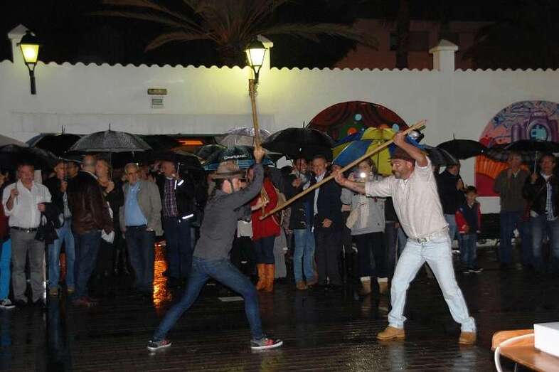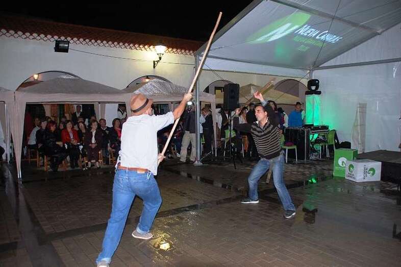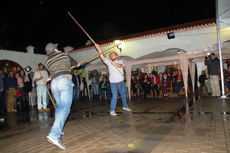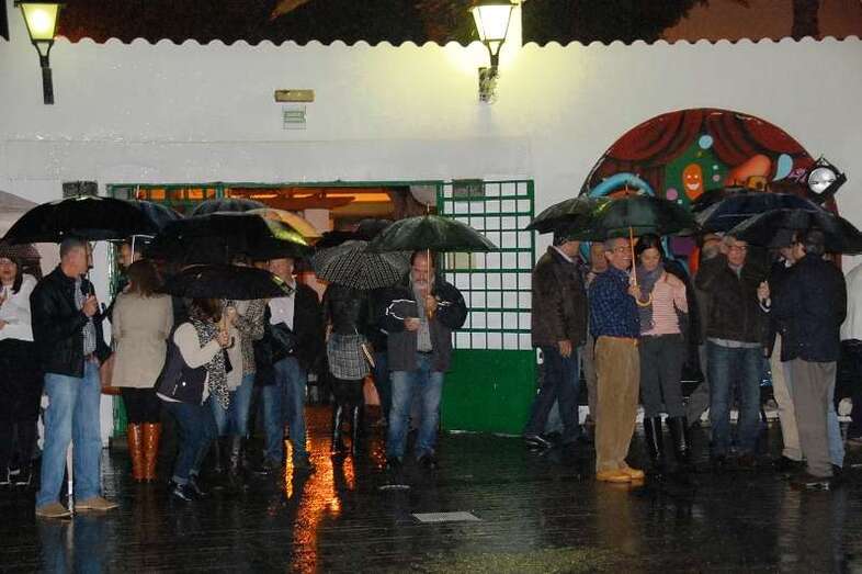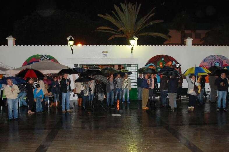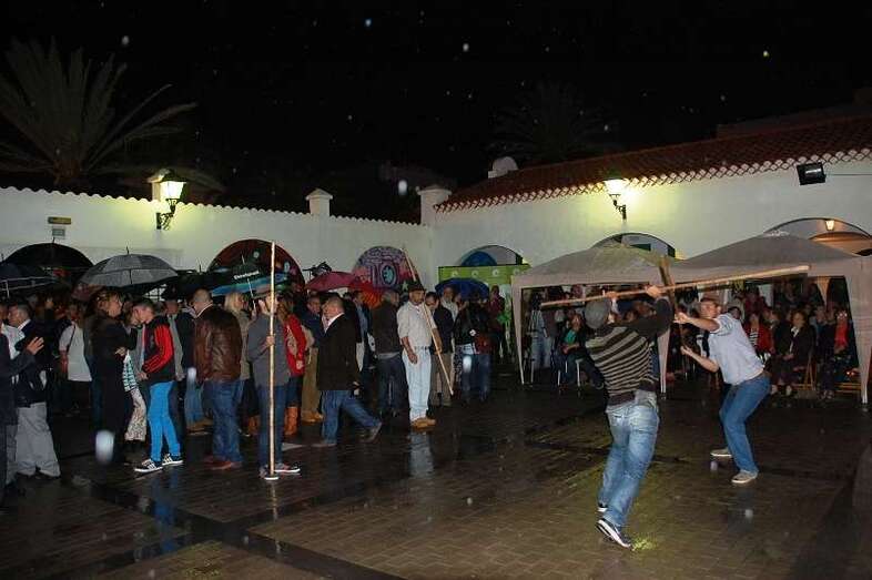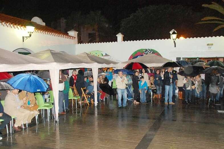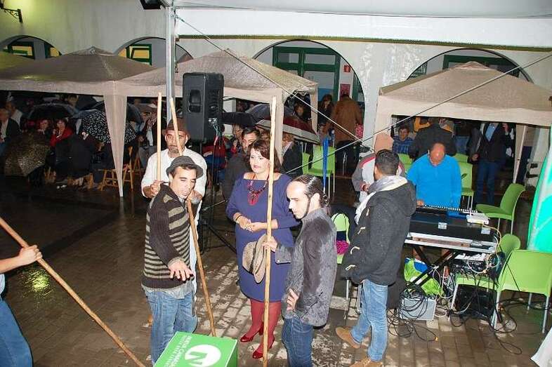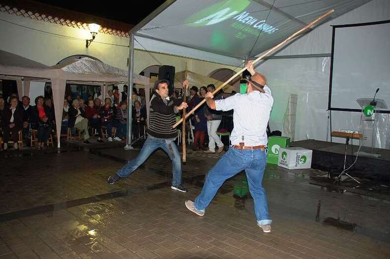 La lluvía deslució y retrasó más de 15 minutos el inicio del acto de los nacionalistas en la Casa de la Juventud, programado para las 20.00 horas. Sin embargo, las inclemencias meteorológicas no impideron que Nueva Canarias lograse llenar el aforo y congregar a unas 500 personas que se acomodaron como pudieron en el patio de este equipamiento municipal de sector de La Mareta de Los Llanos de Telde para seguir debajo de varias carpas el evento, que arrancó con una exhibición del juego del palo a cargo de componentes de la Escuela de Paquito Santana. También había previsto una demostración de baile folclórico pero finalmente no se celebró porque el agua acumulada en el patio representaba un peligro para los integrantes del grupo.