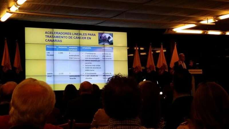 Y continuó con el asunto de los aceleradores lineales para tratamiento de cáncer: 3 en Gran Canaria por 7 en Tenerife, con 2.293 atendidos en Gran Canaria y 2.175 en Tenerife.