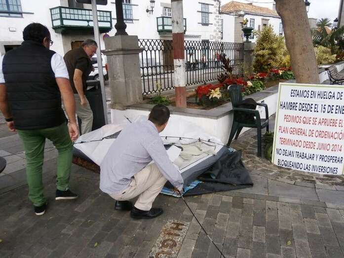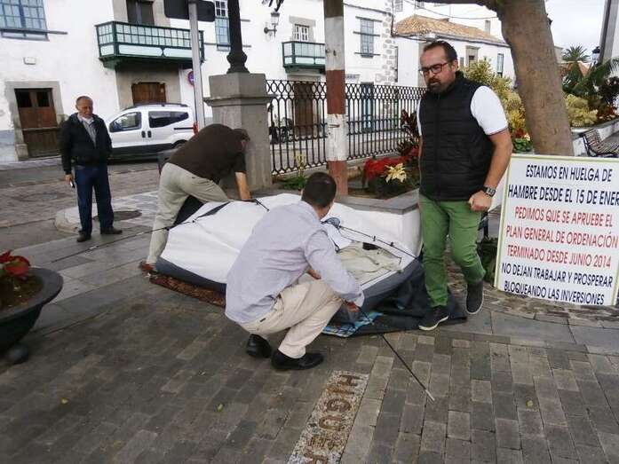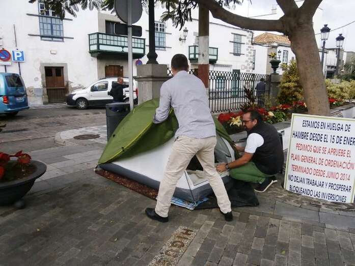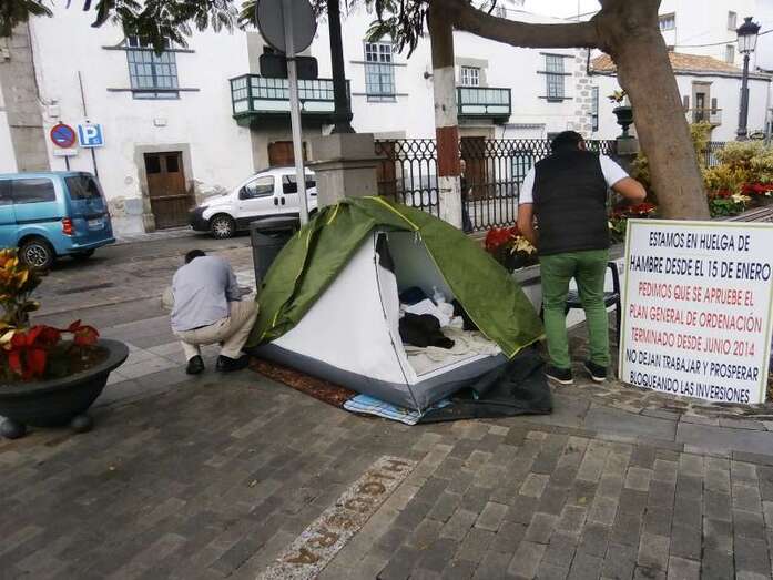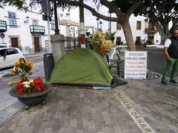 Telde.-El empresario Gonzalo Cáceres, en huelga de hambre desde el 15 de enero, ha tomado la decisión de abandonar la medida de protesta que estaba llevando a cabo en la plaza de San Juan. Sostiene que ya existe un compromiso para debatir en un Pleno extraordinario el nuevo Plan General de Ordenación de Telde a mediados de febrero, por lo que su objetivo parece que se ha cumplido.