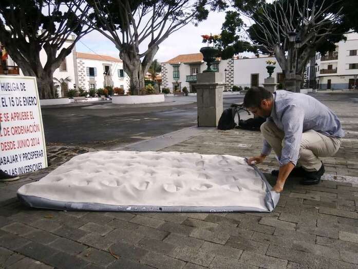 El joven mostró su agradecimiento por los apoyos recibidos durante la última semana. Especialmente a la alcaldesa, Mari Carmen Castellano, que asegura que pasó a visitarle todos los días durante la protesta. También a Pablo Rodríguez, edil de Urbanismo, por haber sido transparente y haber dicho la verdad sobre los motivos del retraso en la aprobación del Plan General. Por otro lado, agradeció a empresarios y vecinos que respaldaron su iniciativa.