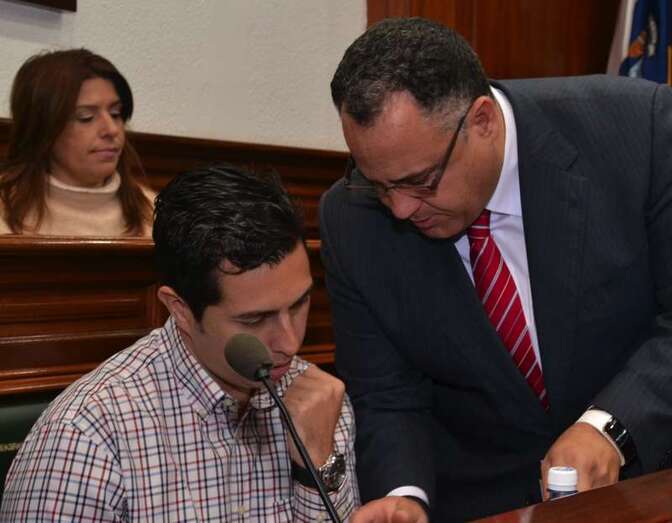 El concejal de Urbanismo, Pablo Rodríguez, charla con la alcaldesa y dirigente de Telde Responde, después del Pleno (Foto TA) El concejal de Urbanismo, Pablo Rodríguez, charla con la alcaldesa y dirigente de Telde Responde, después del Pleno (Foto TA)